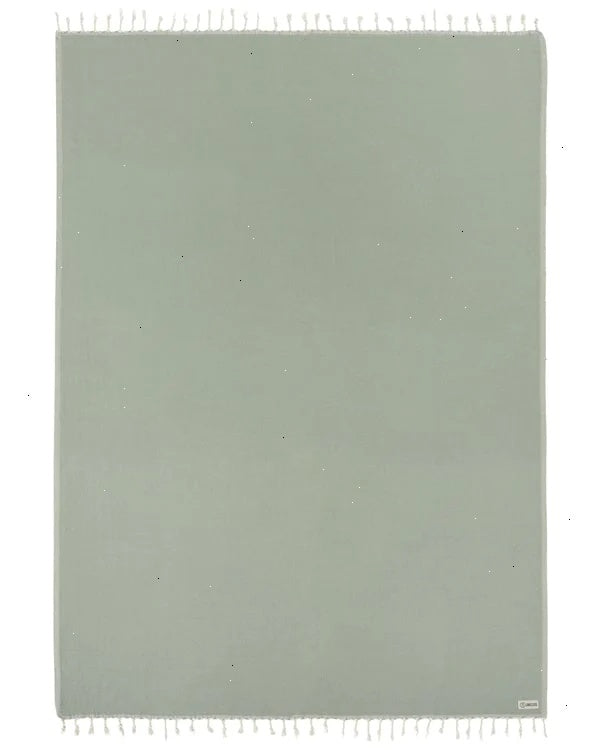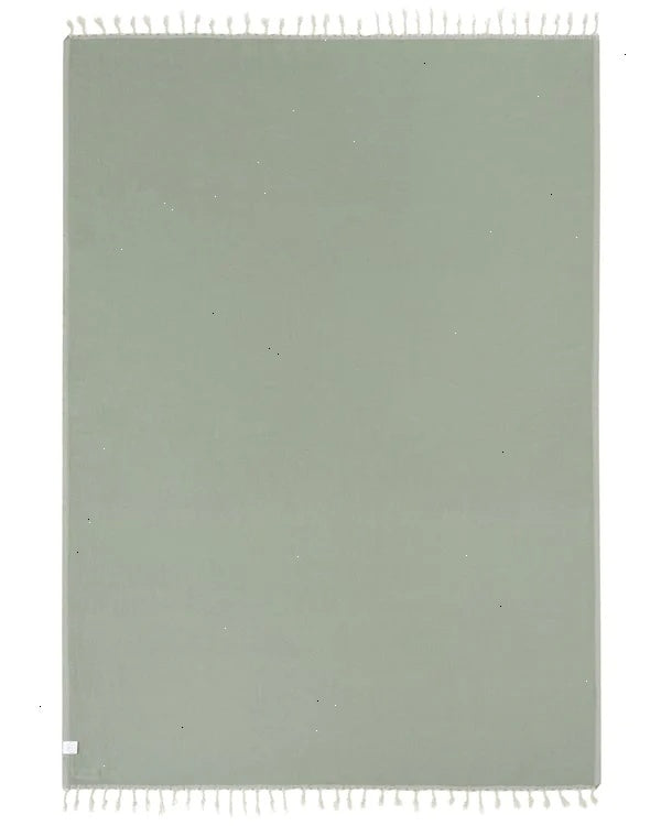 Feel the luxurious weight of 100% Turkish Organic Cotton with this ultra-soft and cuddle-sized essential. This solid sage color is sure to elevate any space, indoor or out, and is completed with twisted tassels for added style.